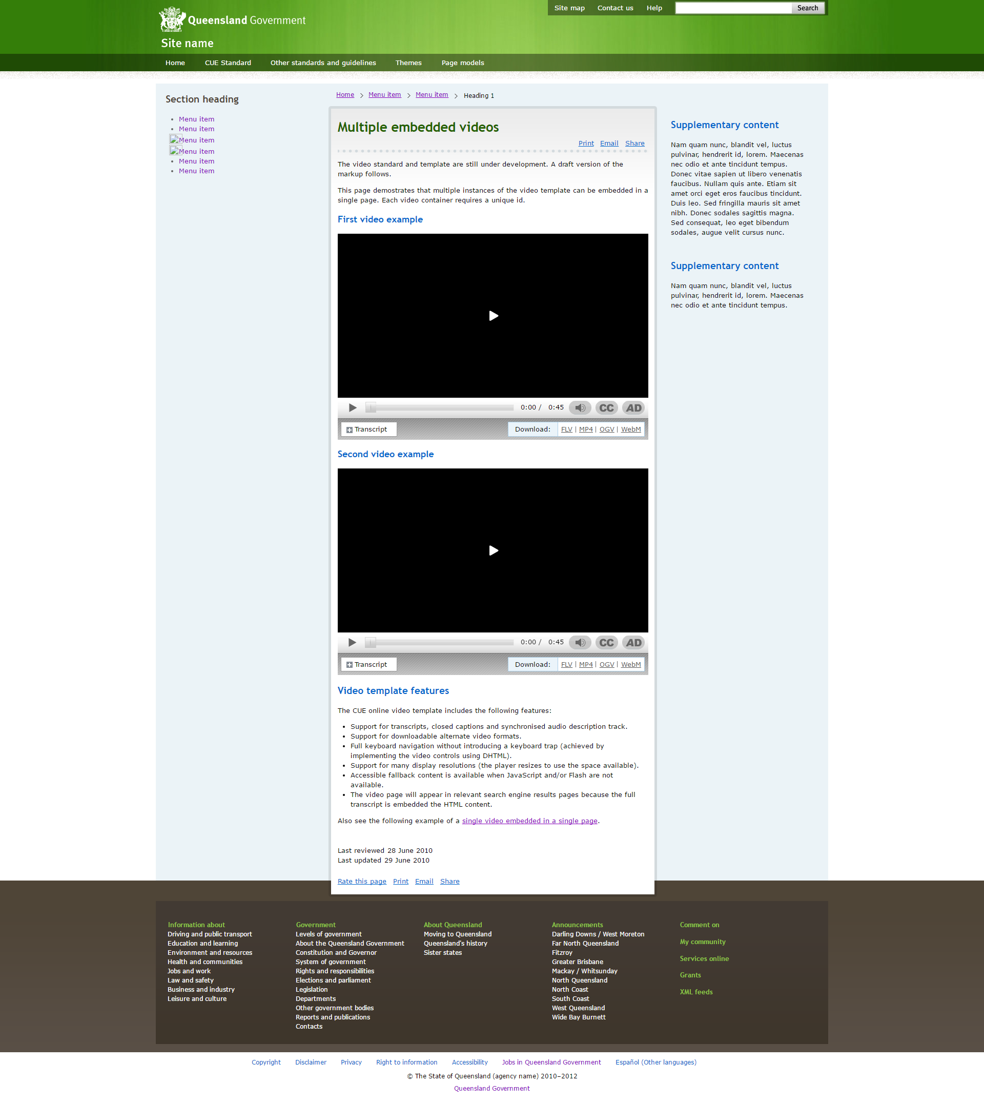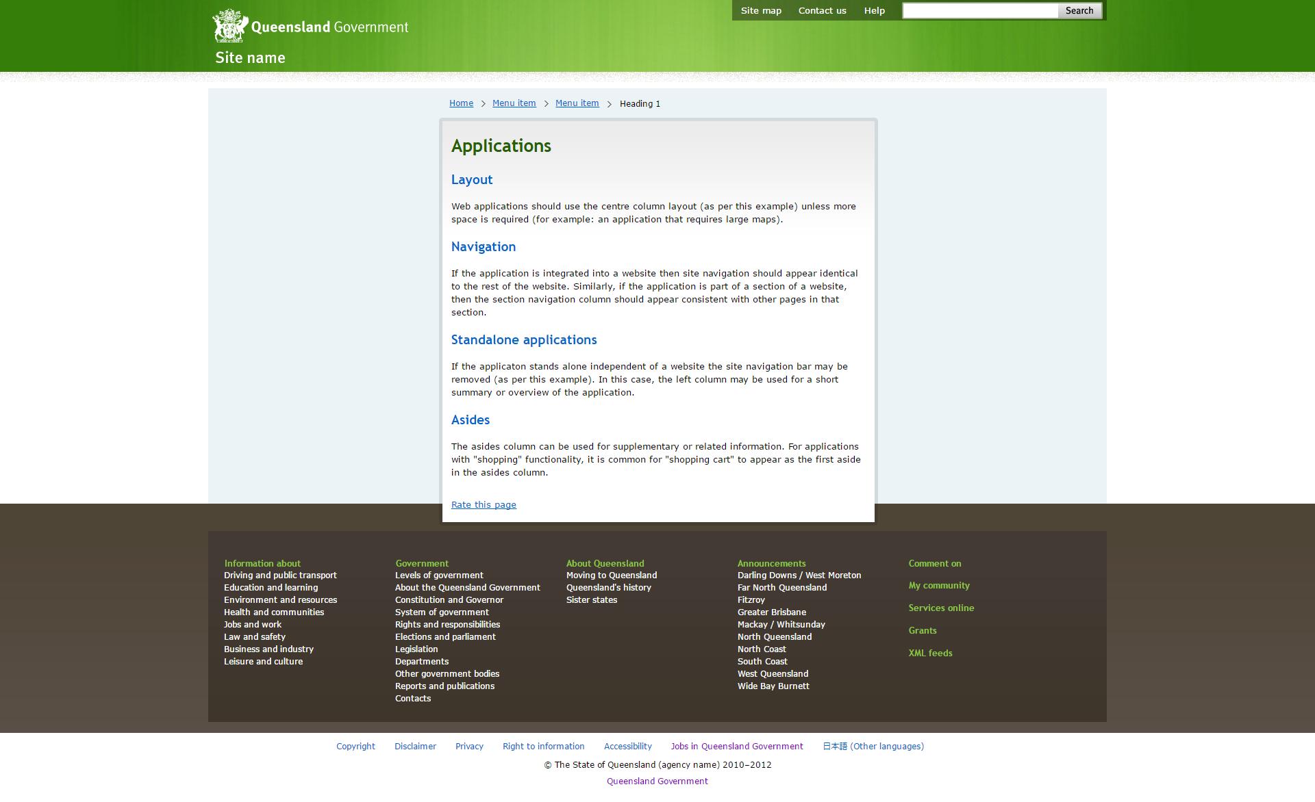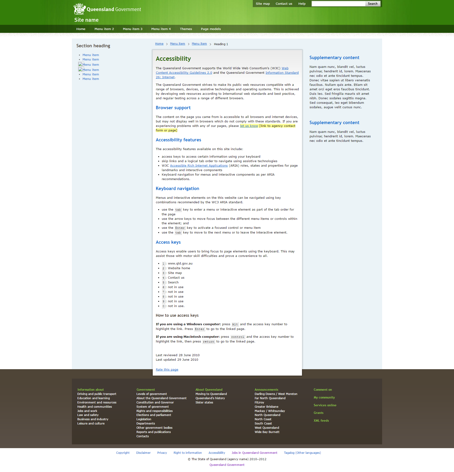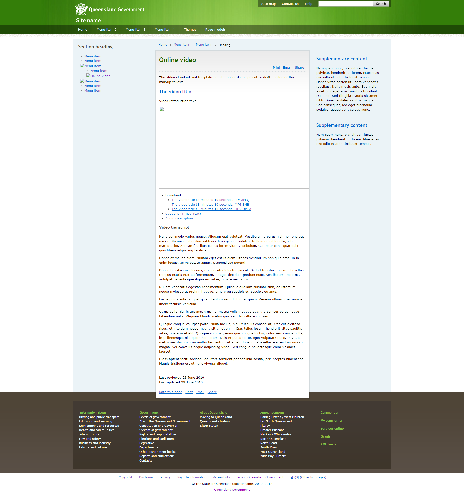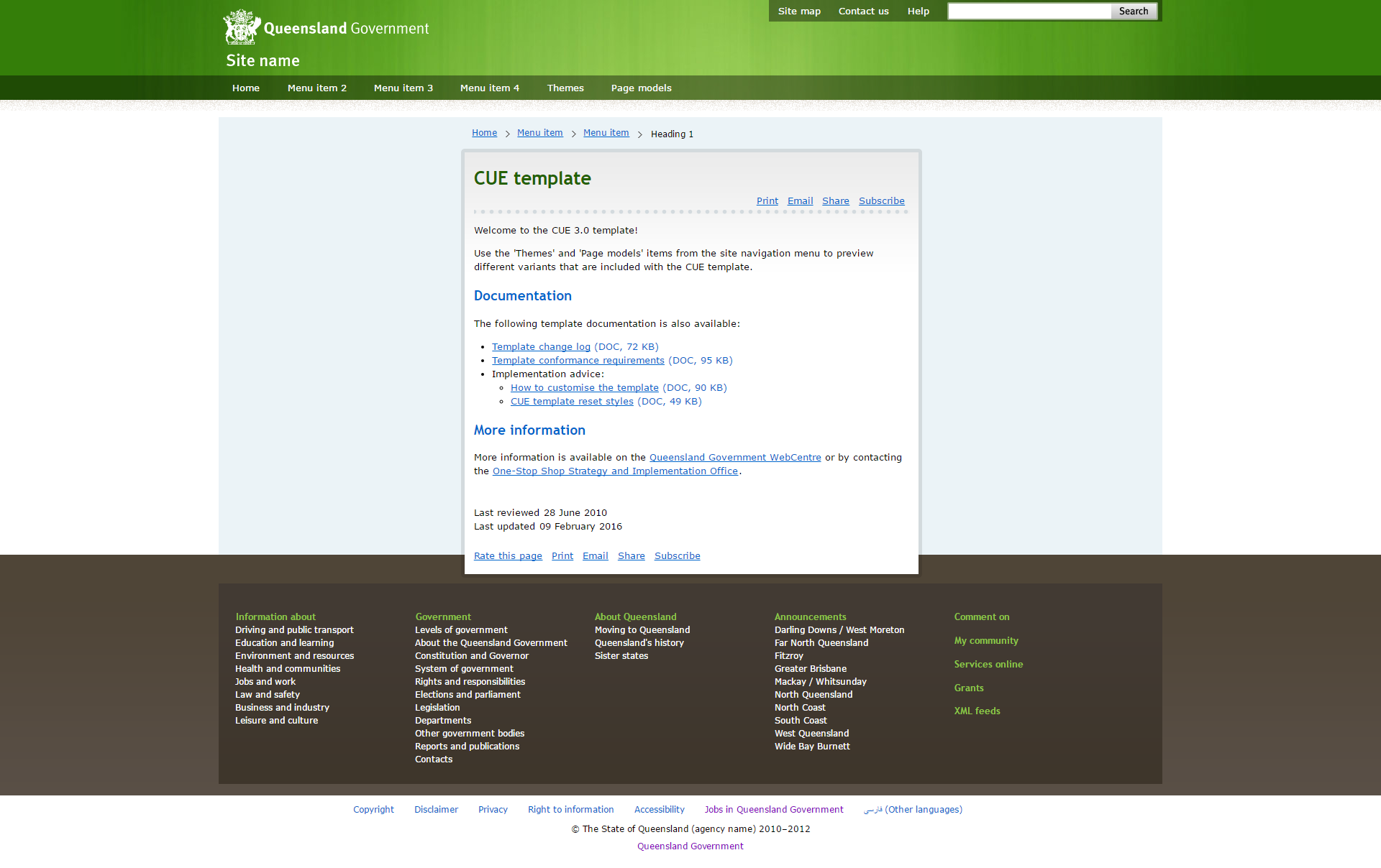 Note: the 'Themes' and 'Page models' links in the site navigation will present variations on the template.