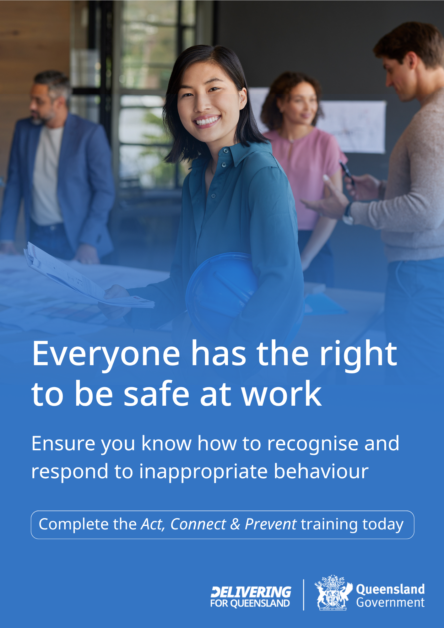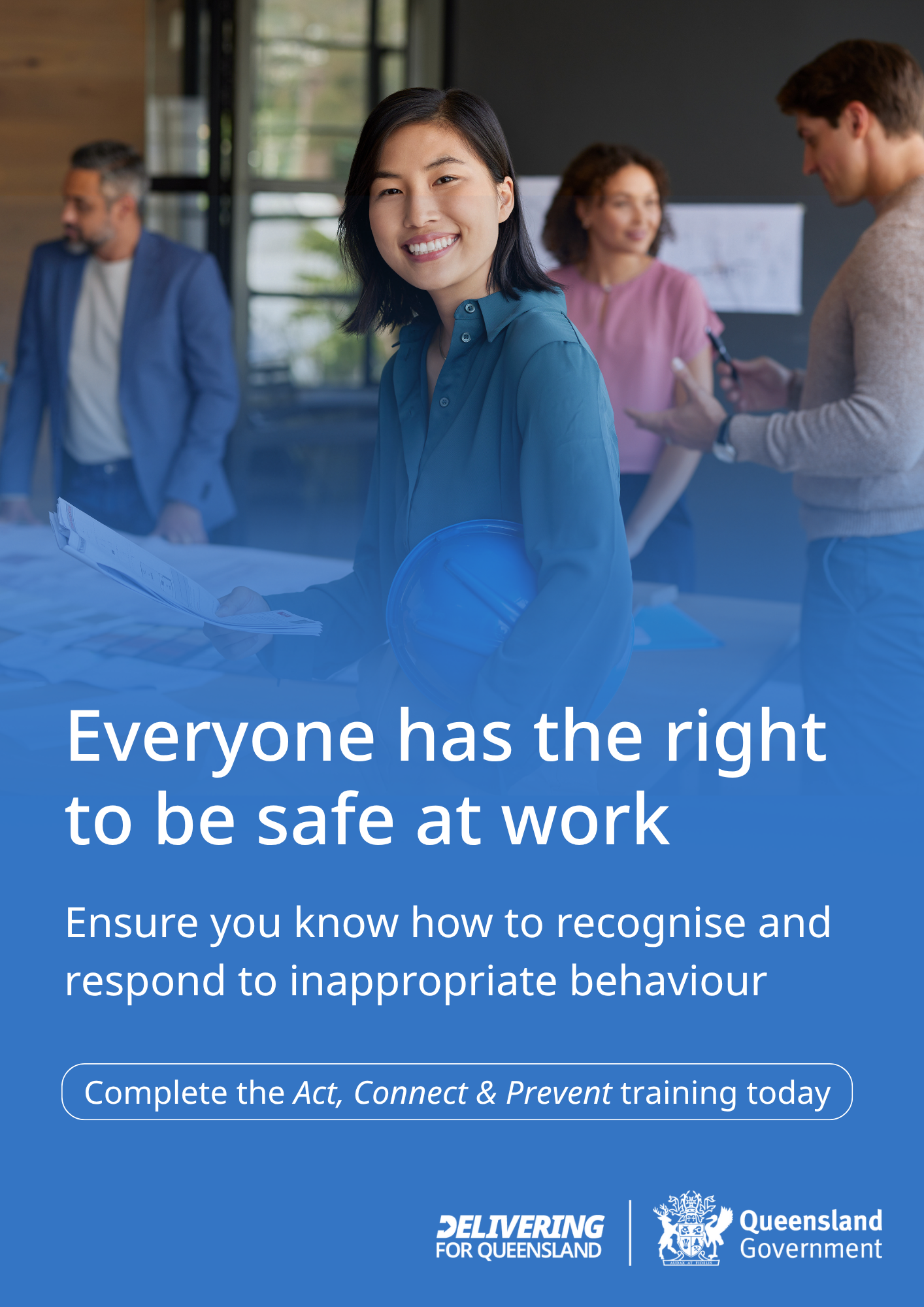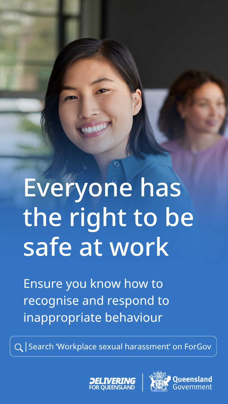 All Queensland public sector workplaces must provide a safe, respectful and inclusive workplace free of sexual harassment and discrimination.
